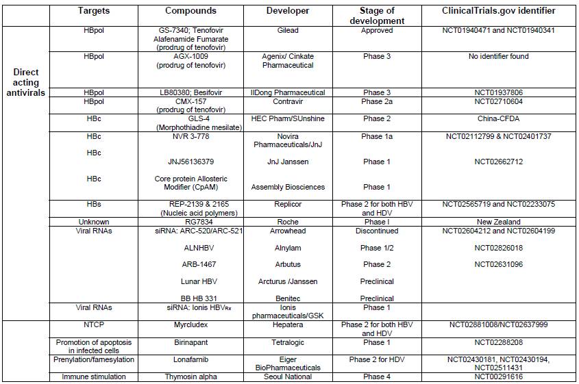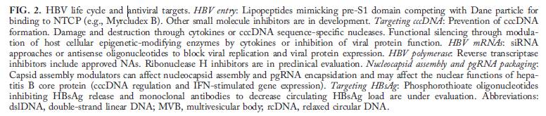 靶向HBV生命周期多个阶段进而抑制病毒复制和病毒抗原产生的抗病毒治疗和恢复对HBV免疫应答的免疫调节疗法的联合应用似乎能实现HBV的“治愈”目标,但该采用哪种特异性的药物联合并不知晓,因为多数的抗病毒或免疫调节药物在临床评估阶段,不是在phase 1b 期就是在 phase 2期。已经在自发性自愈或抗病毒(IFN或NA)介导的HBeAg或HBsAg消失的慢性HBV患者中证实了HBV特异性T细胞功能可部分恢复的可能性。随着靶向HBV生命周期中不同步骤的siRNA或抗病毒药物的新方法联合应用的逐步可及,。抗原负荷的减少可能有助于HBV特异性T细胞应答的恢复。在历史上,免疫调节疗法主要集中针对处于免疫活性阶段的患者,但最近的研究表明,在“免疫耐受或高复制非炎症”阶段的患者也应被认为是存在HBV特异性T细胞表达的。在肝病早期阶段“治愈”乙型肝炎的能力理论上对降低肝癌风险有较大的影响。