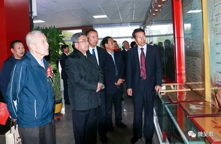 各位领导及来宾在王守军校长的陪同下参观校史展