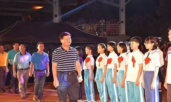 ▲县领导、各镇领导、县直各部门领导观赏师生们表演的文艺节目