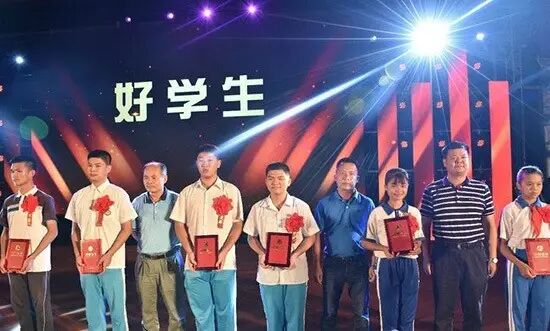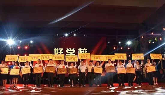 县人大主任张国东、县长李永群、县政协主席覃超和县书记麦赞华为获得“好学校”荣誉的集体颁奖。