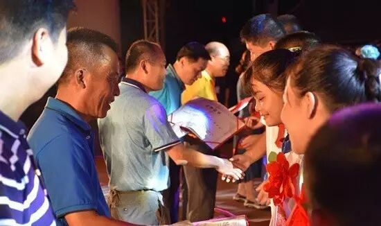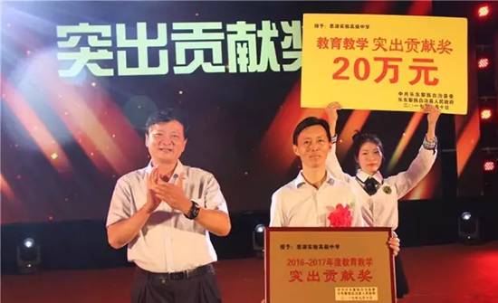省人大常委会副主任、乐东县委书记林北川为荣获2016--2017年度“教育教学突出贡献奖”的思源高级中学颁奖