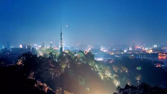 站在宝石山山顶上,皎洁的月光洒在整个湖面上,会令人感觉西湖就在脚下,好像一抬脚就能跨到断桥上。刚从城市上空升起的月亮,放佛一伸手就够摘得到。山上的花草树木,在景观灯的衬托下,与天上明月交相辉印,美妙无比。