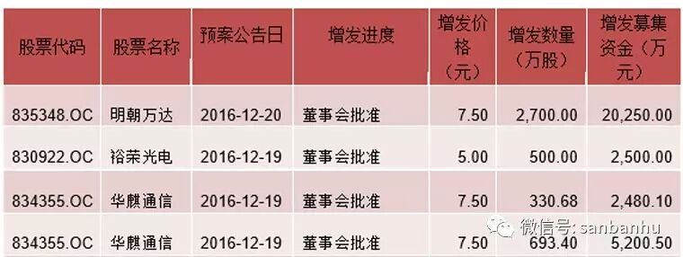 表格三:新三板创新层上周新增计划融资
