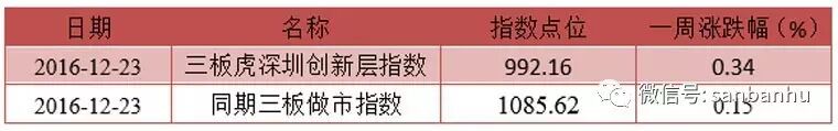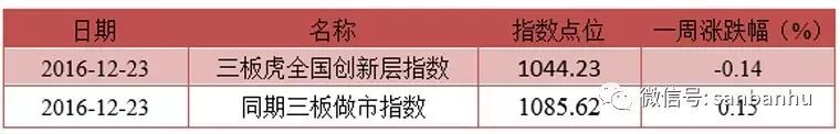 上周三板虎创新层指数: