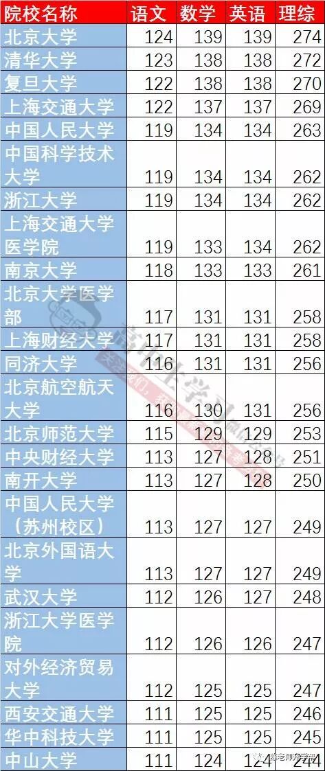 根据历年录取数据,想上一所不错的985大学,理综至少不能低于240分!