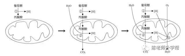 例:有氧呼吸是指细胞在氧的参与下,通过多种酶的催化作用,把葡萄糖等有机物彻底氧化分解,产生二氧化碳和水,释放能量,生成许多ATP的过程。这个概念很长,实际上我们需要清楚的是有氧呼吸的每一个阶段发生什么生化反应。脑海中要有一张动态图,如下。