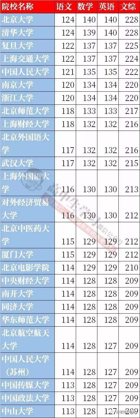 从以上数据分析得知:文科生要考上清北,数学和英语肯定是要接近满分的,文综肯定要在230分左右。要知道,以上都是按照最低分数统计的!实际上在有些省市,清北的录取分数要远高于这些分数!