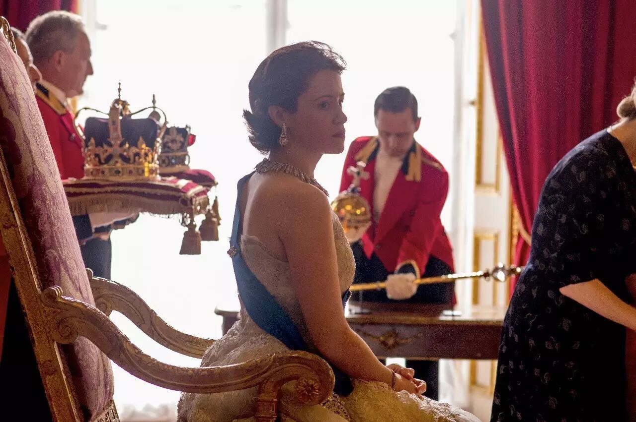 而最近一部口碑甚好、喜夺金球三奖的历史正剧《王冠/THE CROWN》(第一季),由70年前伊丽莎白的婚礼落笔,至她在位期间的第一任首相丘吉尔辞职为止,细陈了她在三年间由女孩至女王的成长故事。