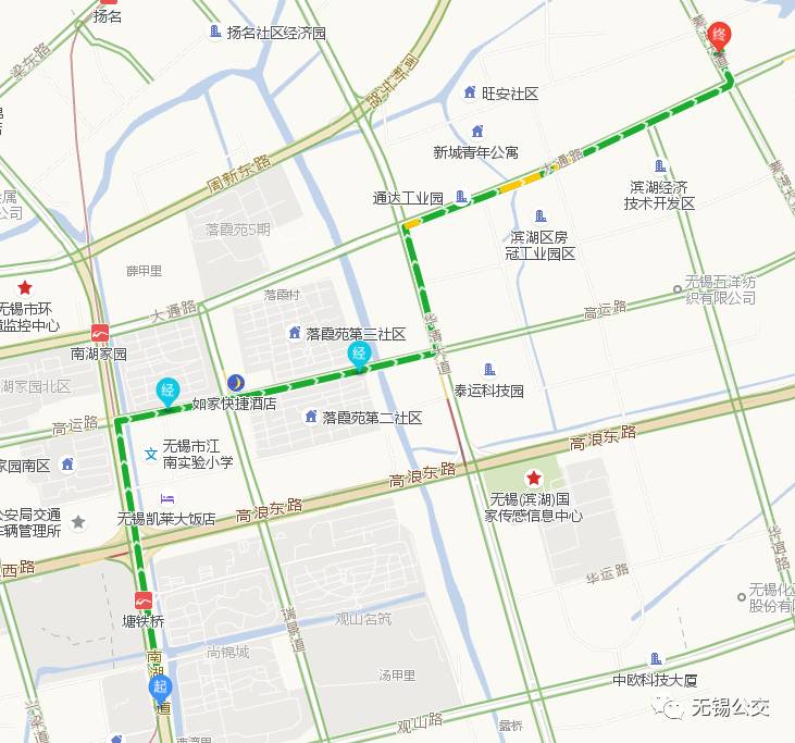 ※观山路(南湖大道)站、永昌桥站、无锡市车辆管理所站、南湖大道(高运路)站、落霞二社区站、蠡霞桥站