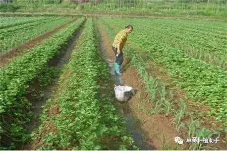 对大棚等保护地草莓,更要坚持“少量多次”的原则,追肥与灌水结合进行,具体数量和次数依土壤肥力、土壤墒情和植株生长发育状况而定。要以开花期和果实膨大期为重点,多次分施。肥料以硫酸钾复合肥为主,每次施高氮钾型三元复合肥15~20公斤,在拉秧前15~20天停止追肥。