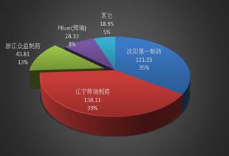 图表 24  2016年阿奇霉素竞争格局(单位:百万元)