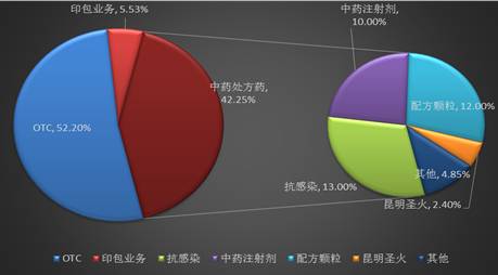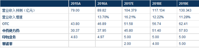 公司核心业务定位于自我诊疗(OTC和大健康)和中药处方药领域,致力于成为“自我诊疗引领者”与“中药价值创造者”的医药企业。公司2016年自我诊疗业务实现收入46.89亿元,中药处方药37.95亿元,印包业务4.97亿元。