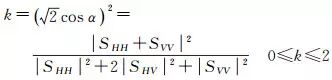 由于当α∈[0, π/4]时,主导散射为面散射,此时k∈(1, 2];当α∈(π/4, π/2]时,主导散射为偶次散射,此时k∈[0, 1]。因此,k参数是一种在非相干情形下判别散射机制类型的工具。所以,本文的预分解代码可以归纳为如下。