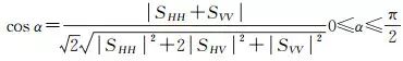 可以看到,去取向角2θ的范围为(-π/4, π/4),然而目标的旋转角范围为(-π/2, π/2),所以当目标旋转角比较大时,去取向并不能使HV分量达到最小,此时将HV全部分配给体散射仍然不合理。