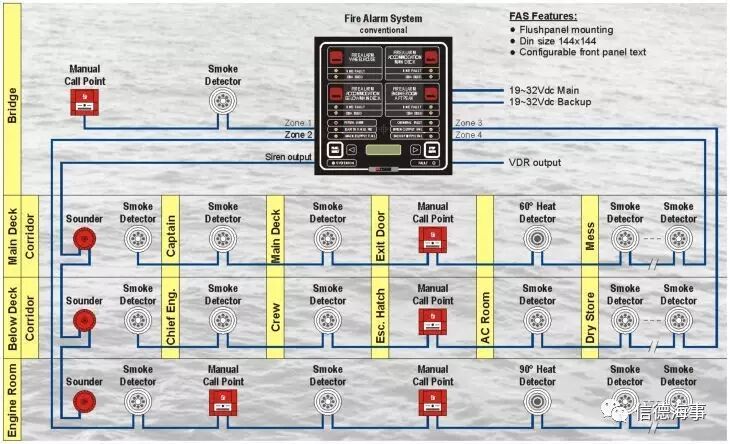 做好各个感温感烟感火还有手动按钮式探头的位置记录,编号清晰,应该和驾驶台的火灾控制面板上面的探头编号对的上。定期抽查测试探头,保证其正常工作状态。