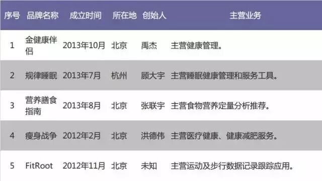 2. 通过列表可以看出,死亡企业多以健康管理为主,从事该领域的企业较多,不利于形成竞争优势,一旦没有巨头注资,很容易被行业淘汰。