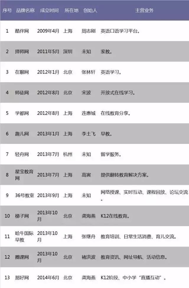 截至2014年死亡以及被收购的在线教育企业不下30家,整个行业在资本的大量涌入以及创业者盲目进入的情况下已经进入泡沫期。