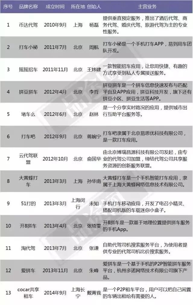 而合并后滴滴快的推出了一系列出行产品,顺风车,巴士,代驾,这让众多中小创业公司亚历山大。首先一大批倒闭的就是打车软件,然后就是拼车和代驾。那接下来让我们看看出行行业的死亡原因。