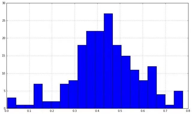 下图为模型R2的分布图,194个模型的解释度集中在30%-60%之间。这个结果是可以理解的,个股收益波动的影响因素会非常多,肯定不止4个因子可以解释。