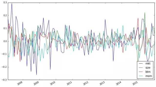因子构建完毕,下面分别对股票、市场指数组合、偏股基金进行回归分析,本文采用最小二乘法多元线性回归模型。