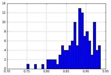 下图为模型R2的分布,可以看到在122个模型当中有近80%超过了85%。