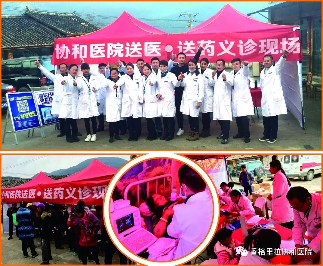 “下乡义诊惠民生,真情服务暖人心”;为更好的解决乡下百姓看病难的问题,结合的精神,推动农村医疗建设为宗旨,我院于2017年3月5日在香格里拉市三坝乡举行免费送医、送药大型义诊活动,此次活动以“不收百姓一分钱,不喝百姓一口水”为宗旨,人员安排以乡下常见多发病为主,由科室资深人员参加,在医务院长游金太带队下;由来自我院的妇科、内科、外科、超声科、检验科的20余名专家等人组成一支医疗队伍。为了体现检查的准确性,我院自备彩超机、心电图机、数码阴道镜及检验设备等投入到义诊活动中。