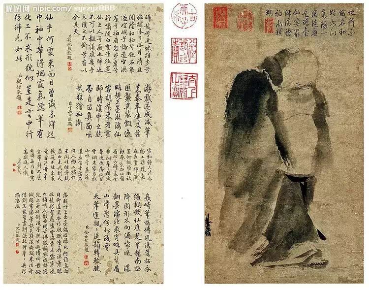 《泼墨仙人图》的产生,与南宋禅宗思想的盛行是分不开的。此图标题为后人所加,从其大头鼓腹的形象来看,倒有点像当时民间信奉的布袋和尚;其精神体态的描写又有点像与梁楷同时的济颠和尚。此图不但体现了禅宗思想,也是梁楷所生活的南宋时代的必然产物。从另一个角度讲,也充分体现了梁楷对人物画体系“离经叛道”的大胆革新精神。