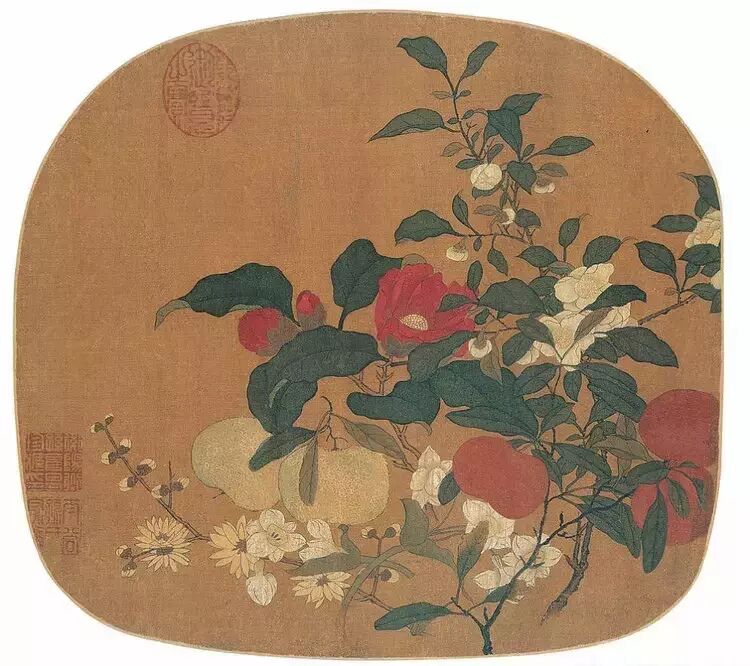 对开有清乾隆御题诗一首:“结实圆而椭,枇杷因以名。徒传象厥体,奚必问其声。鸟自讬形稳,蝶还翻影轻。宣和工位置,何事失东京。”感慨宋徽宗如此精于绘画,工于构图和经营位置,缘何却把国家丢失了?