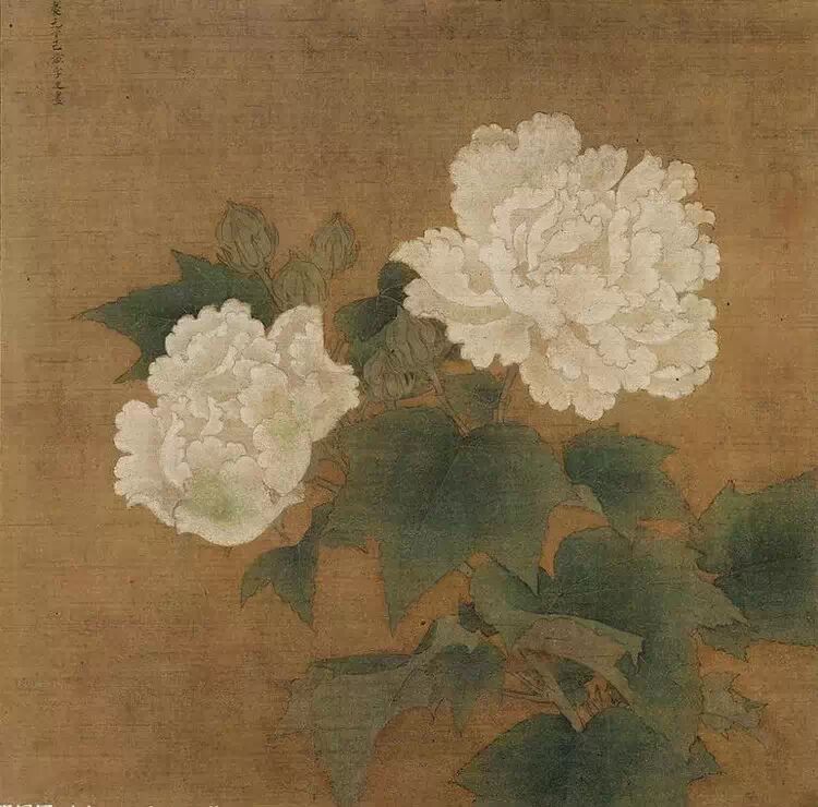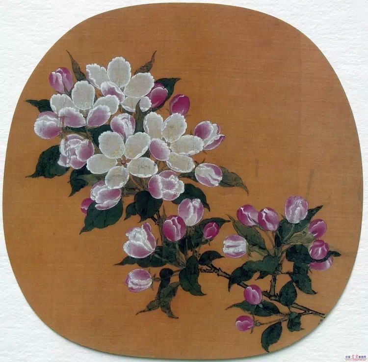 林椿的花鸟师法赵昌,刻画精细,色彩淡雅。此图海棠勾画、晕染,工整细致,栩栩如生,以铅白、胭脂设色,清丽端雅。