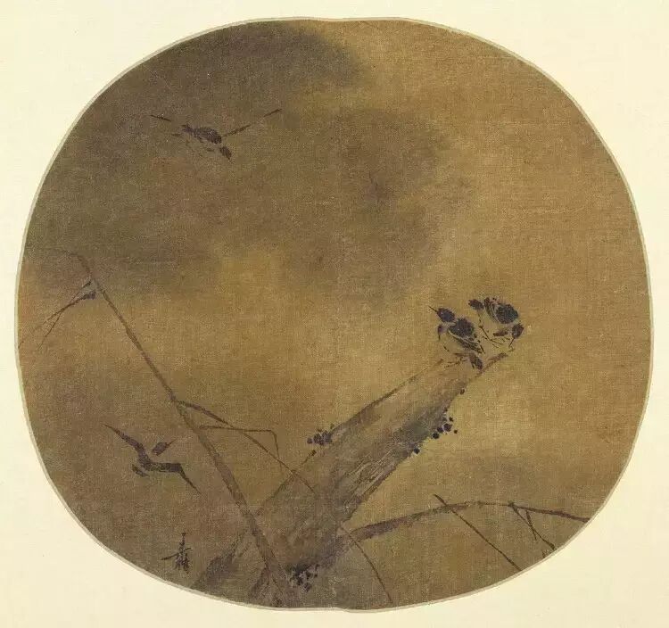 《枇杷山鸟图》页,宋,赵佶绘,纨扇,绢本,墨笔,纵22.6cm,横24.5cm。