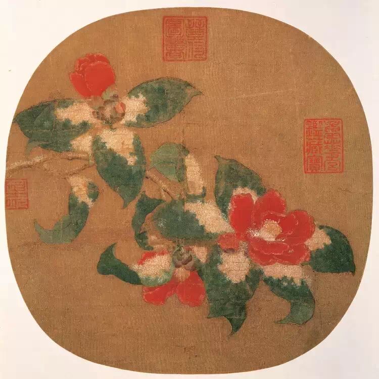 ★☆林椿,生卒年不详,南宋画家。钱塘(今浙江杭州)人。孝宗淳熙(1174-1189)时为画院待诏。工画花鸟、草虫、果品,以赵昌为师,设色清淡,精工逼真,善于体现自然的形态,所绘花鸟果品,小品为多,当时赞为“极写生之妙,莺飞欲起,宛然欲活”。传世作品有《果熟来禽图》、《梅竹寒禽图》等。 《枇杷山鸟图》页,宋,绢本,设色,纵26.9cm,横27.2cm。 江南五月,成熟的枇杷果在夏日的光照下分外诱人。一只绣眼翘尾引颈栖于枇杷枝上正欲啄食果实,却发现其上有一只蚂蚁,便回喙定睛端详,神情十分生动有趣。枇杷枝仿佛随着绣眼的动作重心失衡而上下颤动,画面静中有动,妙趣横生。 《葡萄草虫图》页,宋,林椿绘,纨扇,绢本,设色,纵26.2cm,横27cm。 葡萄累累垂挂,蜻蜓、螳螂、蝈蝈、蝽象伏于藤蔓绿叶间。昆虫以 双勾 填彩法绘制,在色彩上,敷色轻淡,葡萄藤的藤尖点染红色以示其新生初发之嫩,叶子的边缘略以褐色 渲染 ,表明叶片饱经浓霜重露之貌。 宋 林椿《山茶霁雪图》,台北故宫博物院藏。 林椿,生卒年不详。浙江钱塘(今杭州)人。南宋孝宗淳熙年间(1174-1189)画院待诏,工画花鸟瓜果。 古人画雪多以白山粉点为之,甚少强调质感。山茶是“二十四番花信风”小寒二候代表花,本幅三花,一仰一俯一含苞,无论描摹花心积雪、瓣缘凝霜,以及霜雪初晴结晶蓬鬆的样子均极写实,自古色艳莫过红绿,衬以早降瑞雪的洁白脱俗。本幅选自《艺苑藏真下册》,为宋代追求形似与诗意的典型作品。