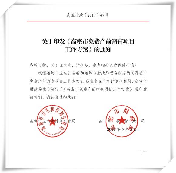 高密市妇幼保健院是我市唯一一家具有免费唐氏综合征筛查资质的单位。