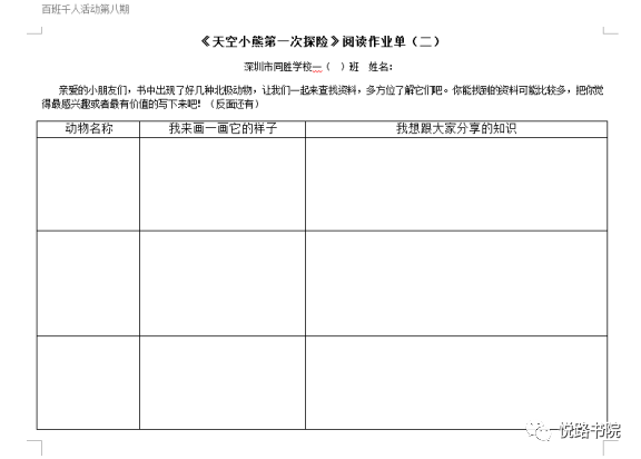 接下来,我以百千第八次共读《天空小熊的第一次探险》为例,谈谈我们的读书故事。