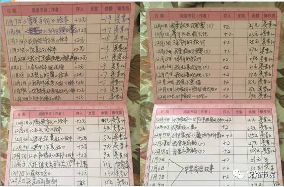 为了让孩子们阅读留痕,一年级的时候,我们用阅读存折记录。