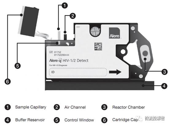 图2.2 Alere q HIV-1/2检测芯片内部结构图。