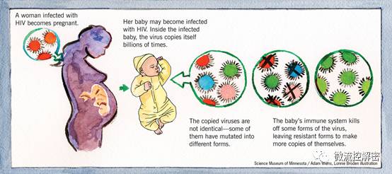 图1.1 HIV会通过母体传染给婴儿,并在婴儿体内变异。