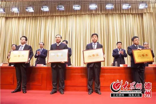 会议宣读了《关于2015年度全市综合考评情况的通报》和受表彰的先进单位和先进个人名单。齐河县、禹城市等130家单位荣获了年度全市推动科学发展建设协同发展示范区综合考评先进单位称号,17家企业荣获年度全市依法纳税先进企业称号,55名个人被评为第二批德州市现代产业首席专家。