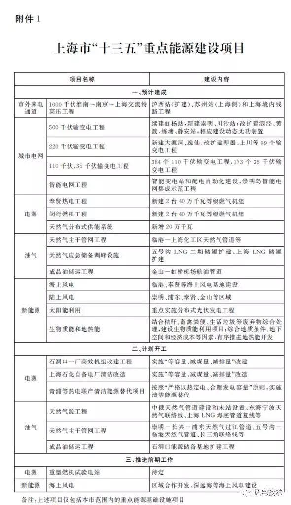 1.积极有序推进风电开发。一是按照“创新引领、高端示范”的原则,继续推动海上风电的领先发展。加快临港海上风电基地建设,适时启动奉贤海上风电开发。在顾园沙、东海大桥南侧等海域积极探索,争取在区域共赢合作开发方面进行示范突破,支持探索深远海海上风电开发。二是统筹发展条件、综合效益和生态环境,结合滩涂、农田、青坎、港口码头等,在崇明、浦东、奉贤、金山等区域的沿江、沿海位置适度有序发展陆上风电,开展“风电田”试点。三是积极推进分布式中小型风电应用。通过风光储互补、智能微网等模式的结合创新,探索用户侧、分布式风电的发展路径。“十三五”期间,全市新增风电装机80~100万千瓦,总装机达到140万千瓦。