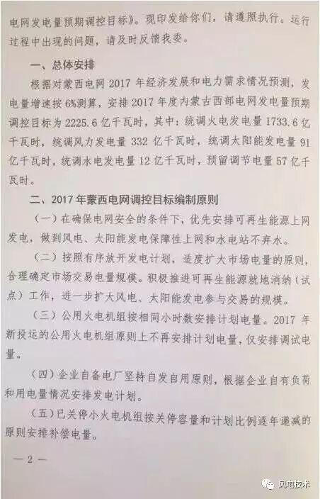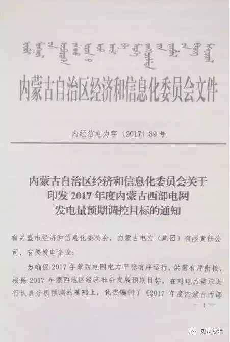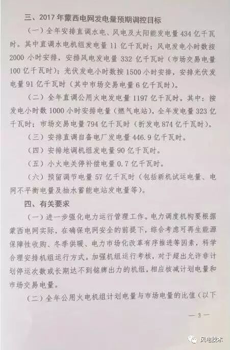 内蒙古经信委印发2017年度蒙西电网发电量预期调控目标