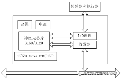 1)以神经元芯片为核心的控制节点:一个神经元芯片几乎包含了一个现场节点的大部分功能模块——应用CPU、I/O处理单元、通信处理器,因此,一个神经元芯片加上收发器便可构成一个典型的现场控制节点。