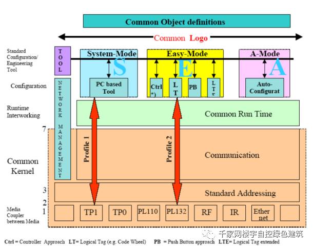 · KNX总线标准以EIB标准为基础,并融合了欧洲另外两个著名总线标准BatiBUS和EHS在配置机制和物理媒介方面的部分内容而形成。