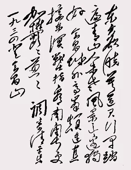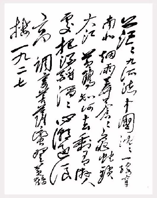 行草书,他创造了一种具有鲜明个性的行草书。他的字形特点是横斜竖直、扬撇抑捺,独特的横折竖,字体忽大忽小,多变的方圆相济几乎无规律可循,但是又有极高的辨识度。书法的总体布局尽显自我风格,自成一体,故有“毛体”之称。