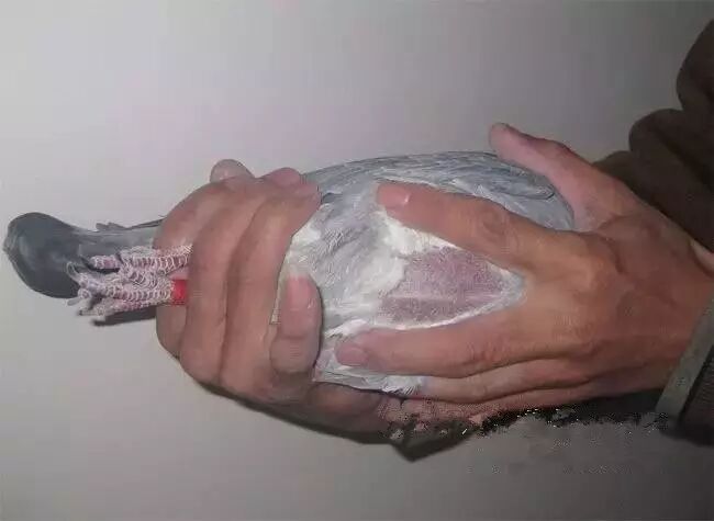这就是赛鸽肌肉结构不能适应实际竞翔需要的退化现象。赛鸽肌肉的另一种退化现象是从肌肉的功能上表现出来。幼鸽在生长发育过程中,受先天遗传与后天营养不良的共同影响,鸽子的肌肉明显软弱无力,特别是双翼主管飞行动作的肌肉,在牵拉翅膀回收时能明显感觉到软弱无力的现象,这种肌肉类型根本不可能在空中保持长时间高速度的飞行。赛鸽的肌肉退化现象还可以从尾羽肌肉收缩力量及尾羽毛的叠加程度表现出来。例如,当赛鸽准备降落时,为了有效降低下落的速度,鸽子的尾部羽毛迅速展开成扇形,增大降落时的阻力作用。当我们用手握住鸽子的下腹部时,紧收的尾羽肌肉能使尾部羽毛叠加成大约一支尾羽毛的宽度。根据众多爱好者的经验,赛鸽的尾羽毛能叠加成一支羽毛的宽度,往往是一羽优秀赛鸽的表现,事实也能证明这一点。当一羽鸽子全身肌肉结构及其功能处于软弱无力的退化现象时,负责尾部羽毛展收的肌肉自然缺乏收缩的力度,尾部羽毛根本不可能达到叠加紧收成一支羽条的宽度。