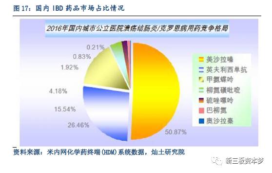 根据《炎症性肠病全球负担指数2015-2025》,2016年国内炎症性肠病药物销售额约为50亿元,预计2025年,中国将拥有超过150万IBD患者,药物市场为166亿元。