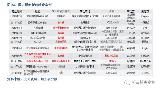 数据表明,近几年国内原创新药转让时研发进度,普遍处于临床I期之前;抗癌原创新药转让最高转让金额超过10亿美金。
