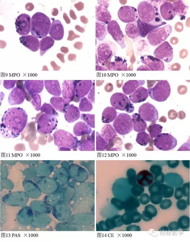 外周血涂片、骨髓涂片及细胞化学染色: