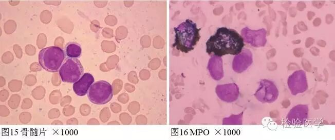 孟予城-廊坊市中医医院: 赞同陈老师的观点,如果细胞化学MPO染色与分型的实验结果本身都是可信的,倾向于混合表达的判断,同时是否也可以考虑由第二家实验室重复相关实验,以消除试剂、设备、操作等影响。我手里有一粒颗粒增多的急淋病例,传到群里,但是此病例细胞化学MPO染色阳性率<3%(图15-16)。
