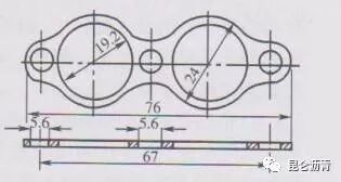 2.1.4 金属支架:由两个主杆和三层平行的金属板组成。上层为一圆盘,直径略大于烧杯直径,中间有一圆孔,用以插放温度计。中间板形状和尺寸如图T0606-4所示。板上有两个孔,各放置金属环,中间有一小孔支持温度计的测温端部。一端立杆环上面51mm处刻有水高标记。环下面层底板为25.4mm,而下底板距离烧杯底不小于12.7mm,也不得大于19mm。三层金属板和两个主杆由两螺母固定在一起。