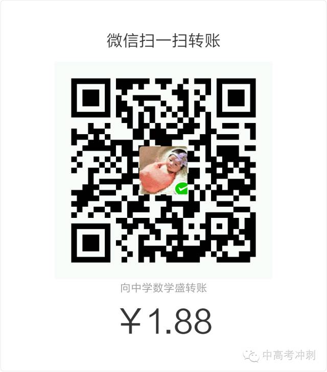 据说,只有打赏的才是真粉丝哦,请小编喝杯茶吧,长按图片,在弹出的对话界面选择「识别图中二维码」。打赏完加小编微信(546733947)入中高考数学官方群,名额有限噢!