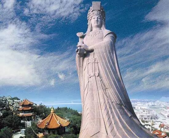 在福建省莆田市湄洲湾口,有一个美丽的岛屿叫湄洲岛。岛上有一座巍峨雄伟、金碧辉煌的庙宇,供奉着世界闻名的“海神”妈祖。